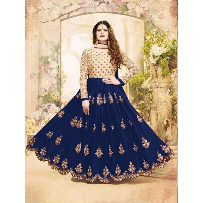 Fully embroidered Blue and beige anarkali suit embellished with stone and zari work to enhance its beauty