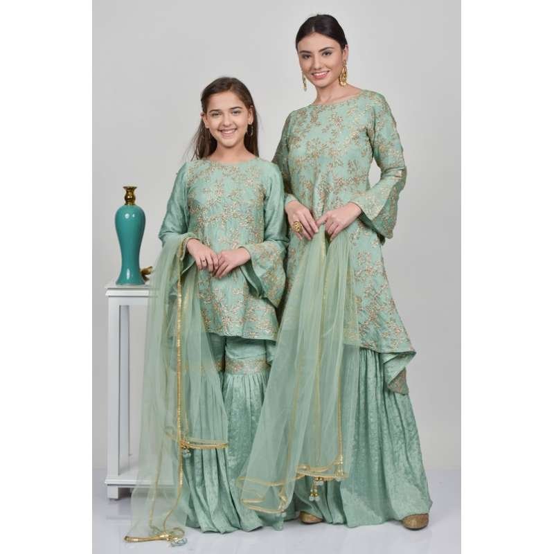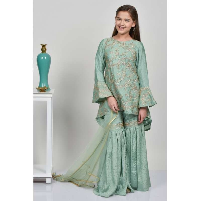 Tags: sage green, young Girls suits, Indian wedding suits, Asian Suits, party wear, girls suit, salwar suits, girl dress, gharara,
