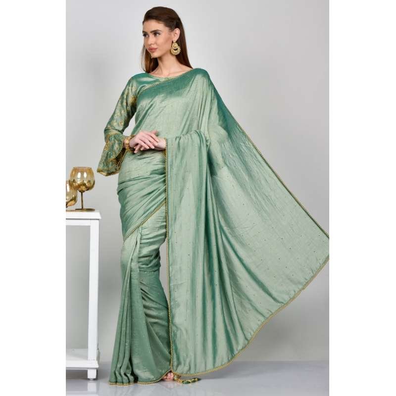 Tags: sage green, saree, ethnic saree, luxury, stitched, asian weddings, fashion, saree, fancy saree, blouse, cocktail saree, party wear, vachitra, south indian,