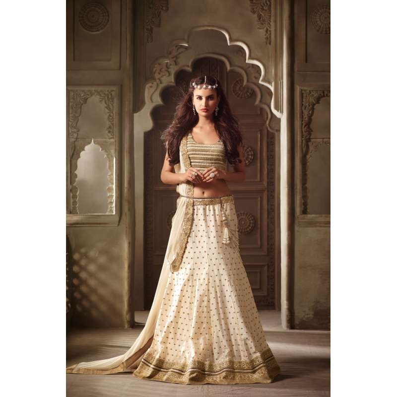 Satin Lehenga Choli Beige & Magenta Indian Wedding Dress