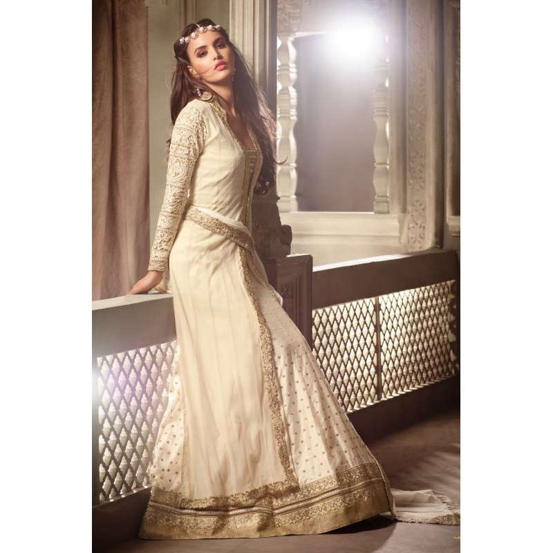 material comes in white colour theme with gorgeous embroideries, embellishments