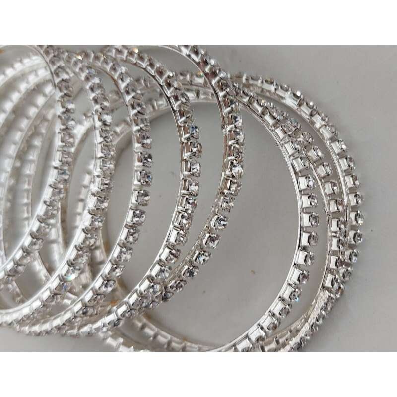Add a touch of glamour to your outfit with our Silver Diamonds Bangles, designed to exude sophistication and charm. Perfect for festive occasions, weddings, or everyday elegance, these bangles are crafted to perfection. Available in size 2/10.