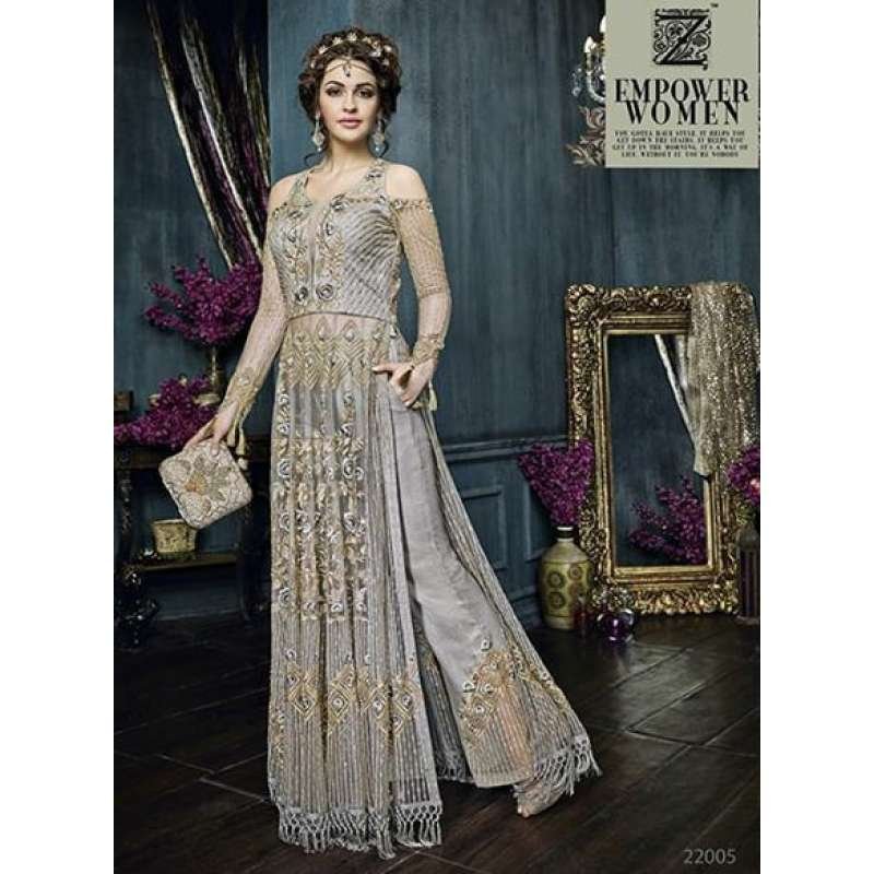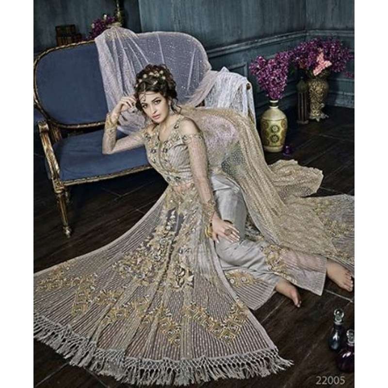 Silver Heavy Embroidered Indian Designer Anarkali Dress