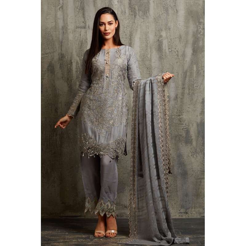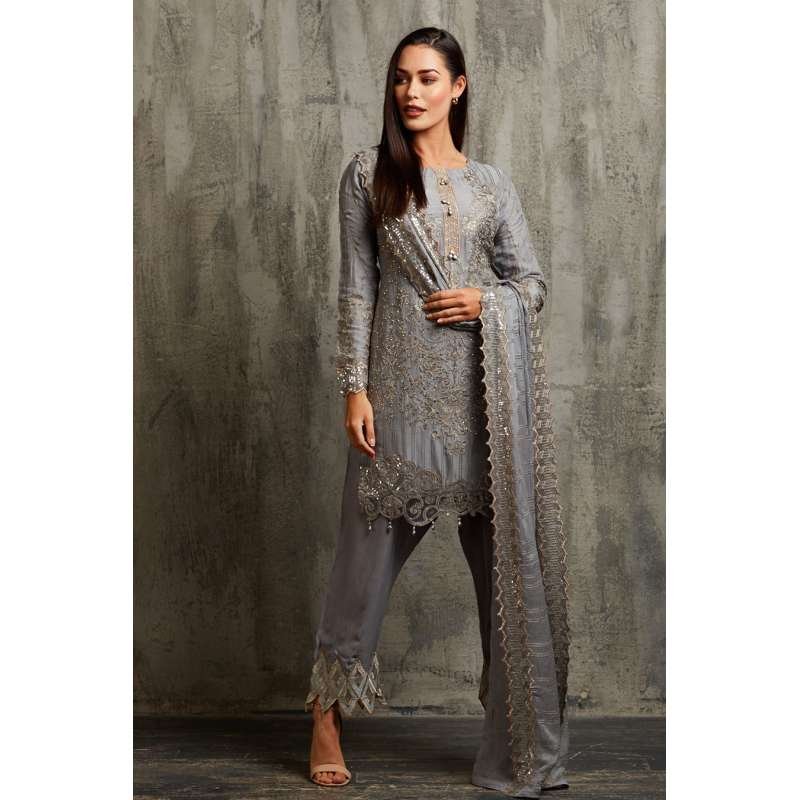 Silver Pakistani Party Suit