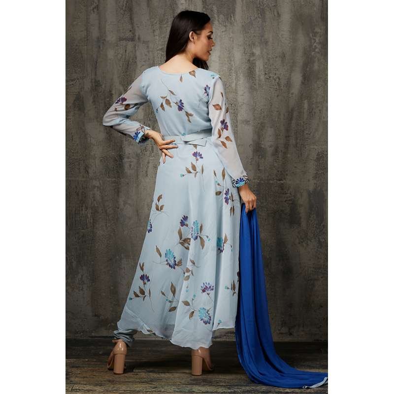 Sky Blue Floral Printed Frock Ready to Wear Pakistani Dress