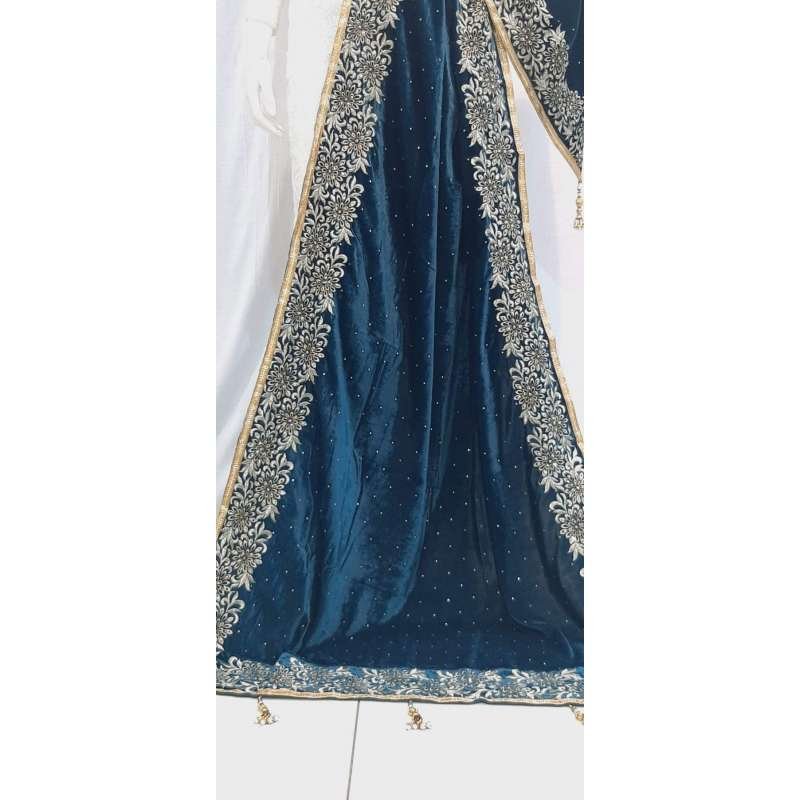 Teal Blue Designer Velvet Shawl