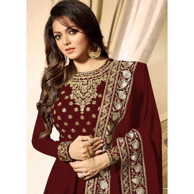 A Gorgeous New Georgette/Net Semi stitched dress with thread embroidery, zari work and stone work.