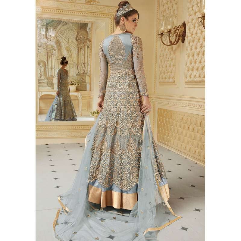 STUNNING FADED DENIM INDIAN & PAKISTANI DESIGNER PARTY AND WEDDING WEAR FANCY ANARKALI GOWN