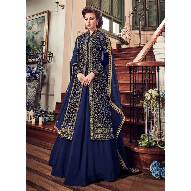 Navy Blue Ethnic Indian Designer Anarkali Dress