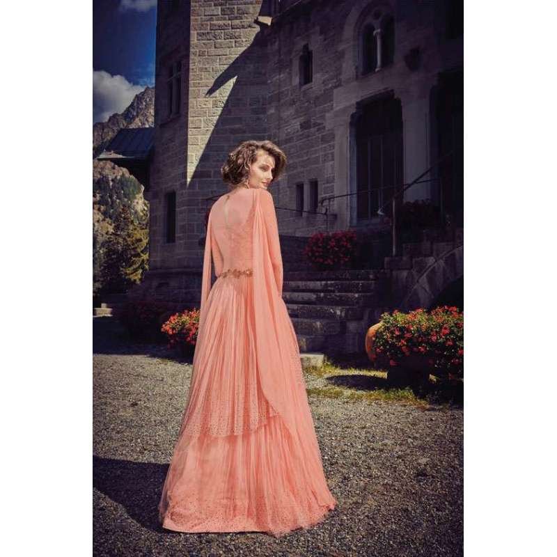 Peachy Pink Indian Designer Long Net Anarkali Gown