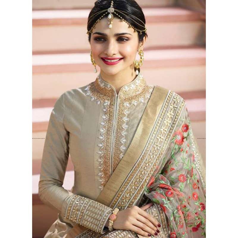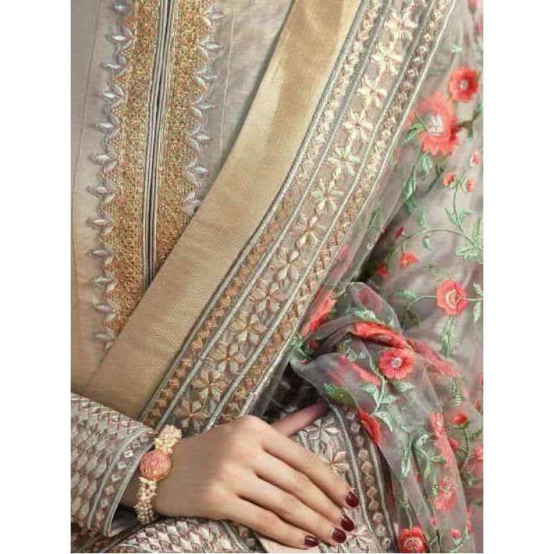 Silver Silk Designer Embroidered Suit Indian Wedding Anarkali Dress