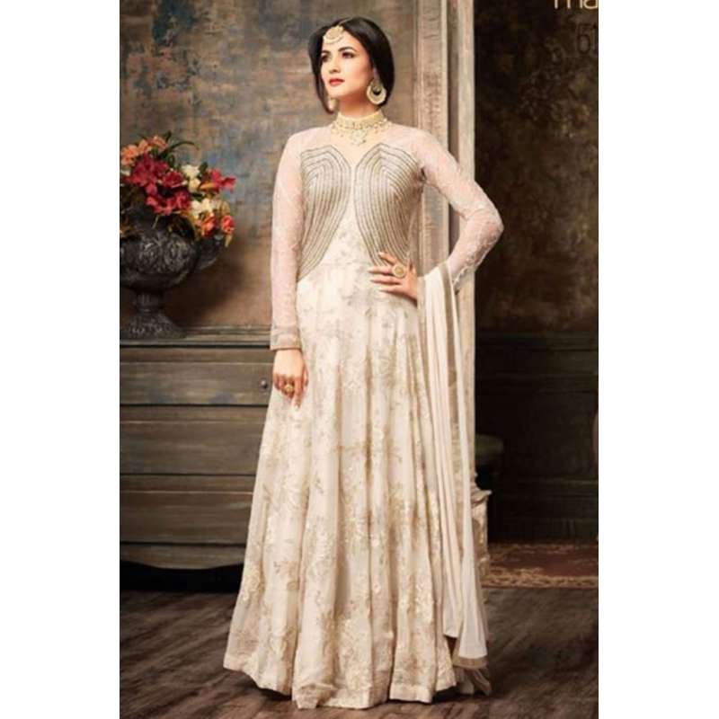 White Abaya Anarkali Suit Pakistani Designer Gown