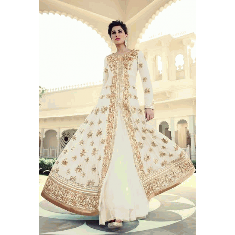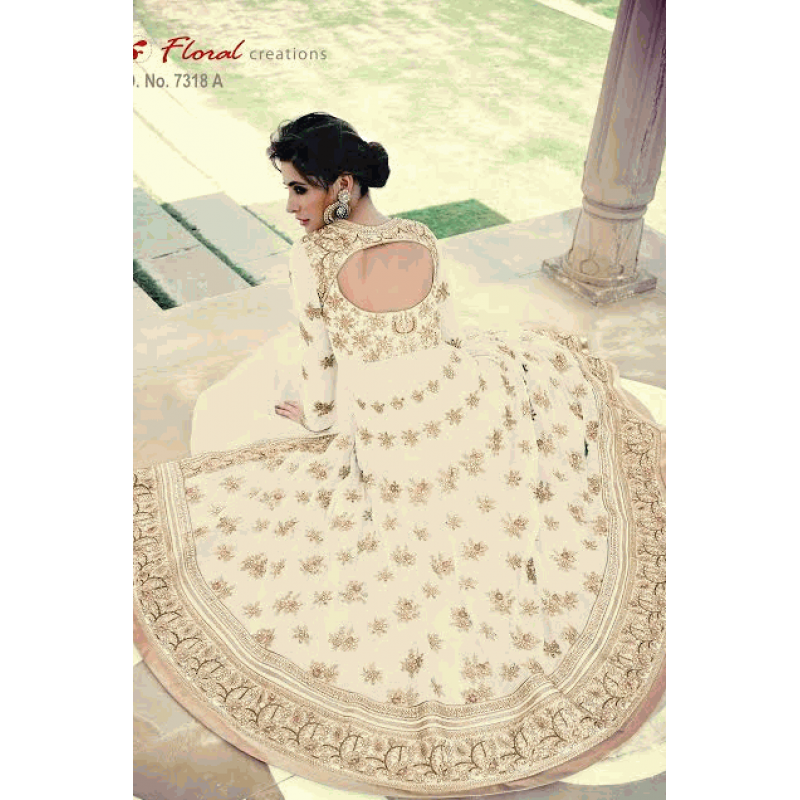 Designed for any occasion this long ANARKALI style SEMI STITCHED Dress comes in (as in picture) in pure FAUX GEORGETTEE now available semi stitched kameez style designed with Embroidered zari, sequins, work and patch border work. Available with shantoon churidar,chiffonleeves fabric and matching bordered chiffon dupatta.