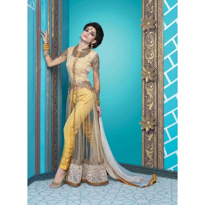 Yellow Net Indian Sequin Party Dress