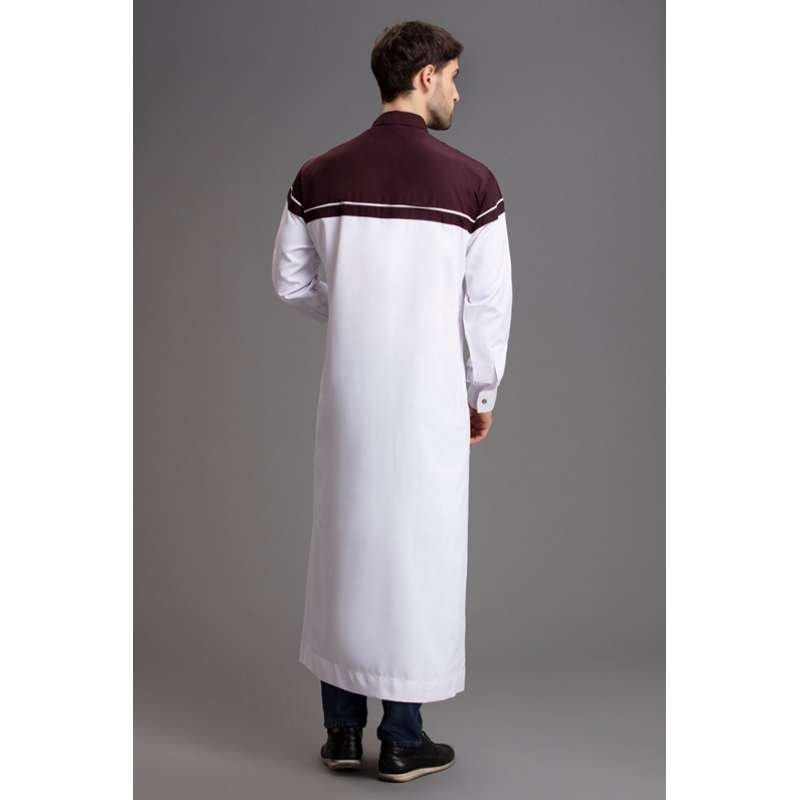 WHITE AND MAROON READY TO WEAR EID MEN'S JUBBA