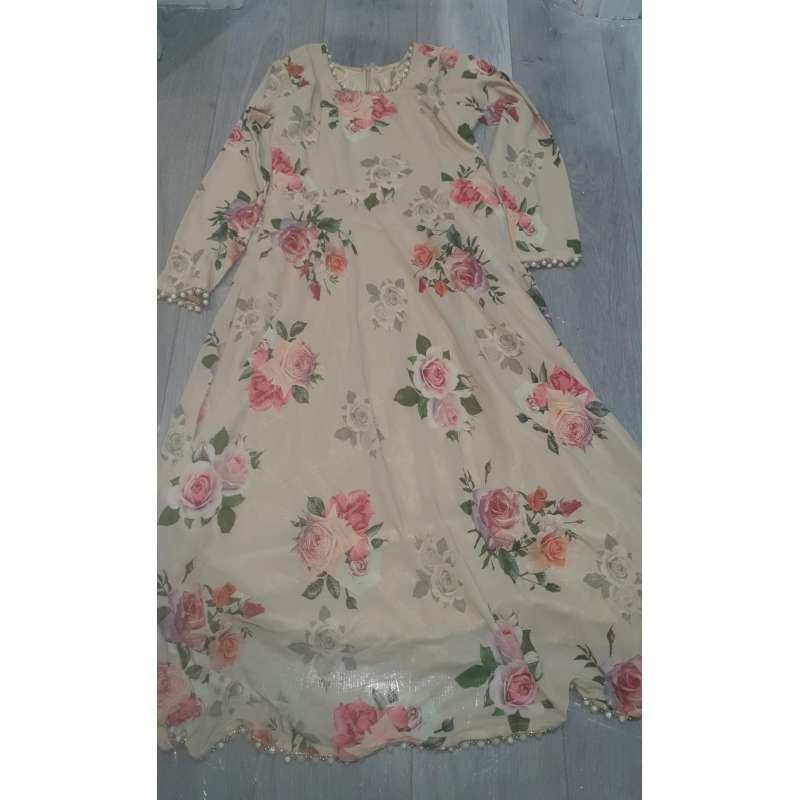BEIGE FLORAL 3D PRINTED FLOOR LENGTH PAKISTANI DESIGNER OUTFIT