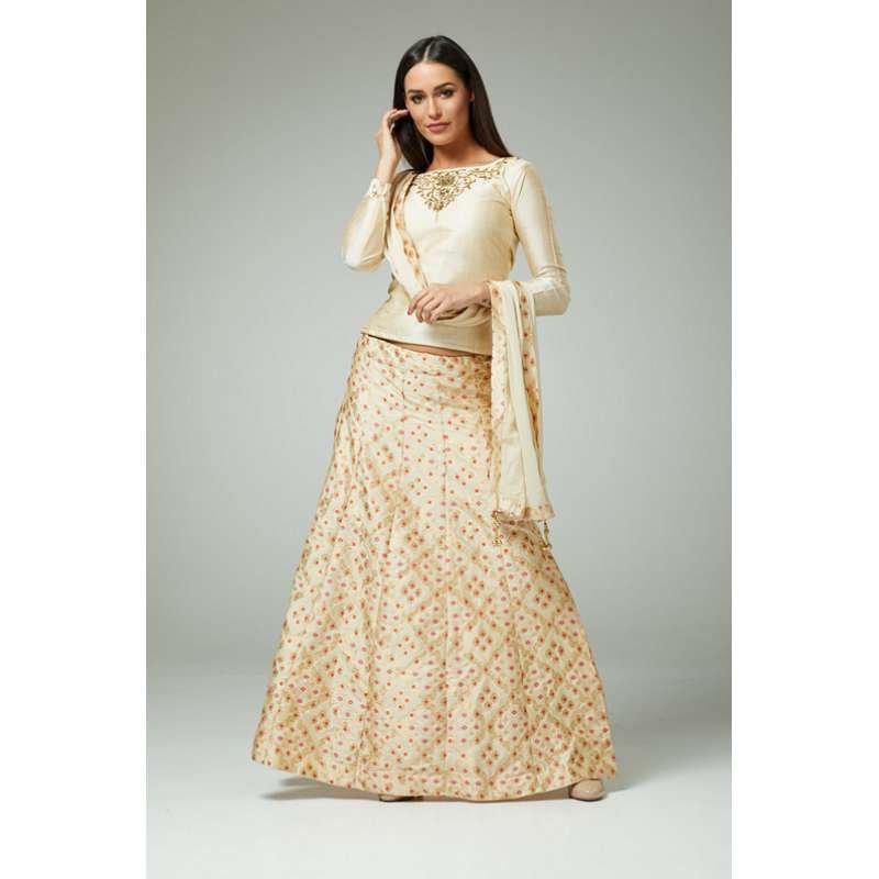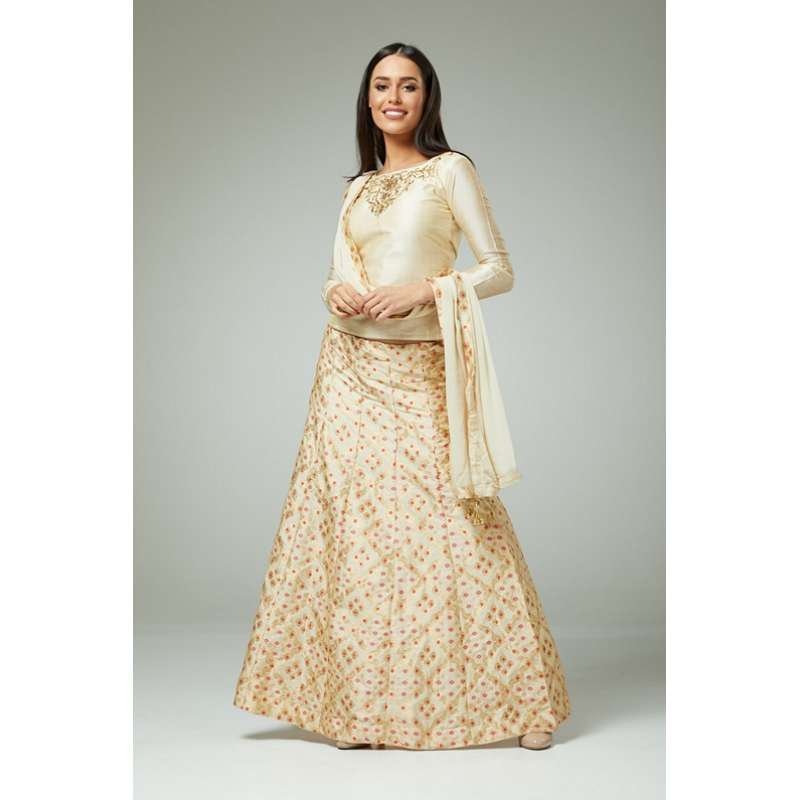 Tags: beige, lehenga, indian lehenga, eid suit, gold lehenga, wedding wear, party wear,