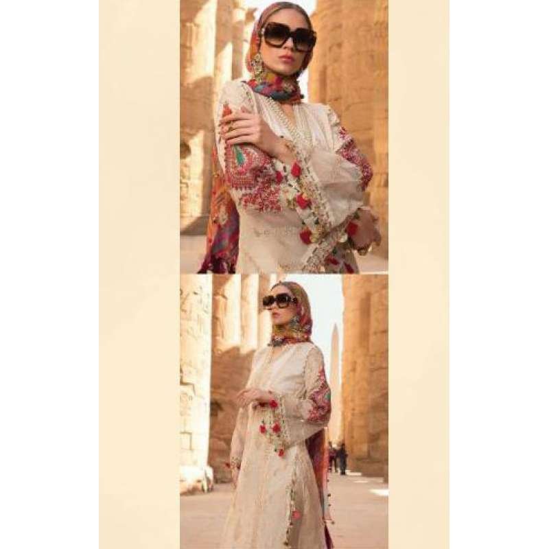 Pure cotton and lawn printed suit with heavy self / patch embroidery