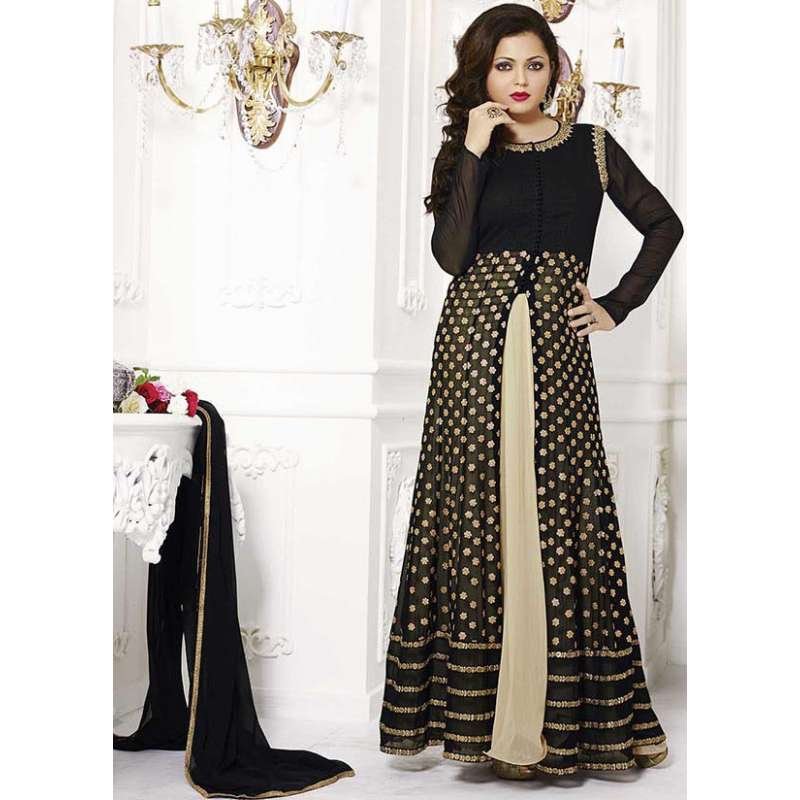 Black & Gold Indian Evening Wear Slit Style Gown