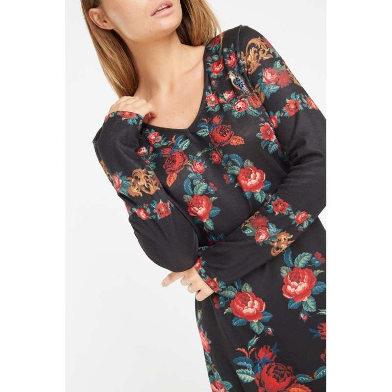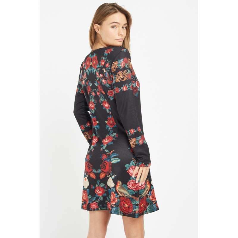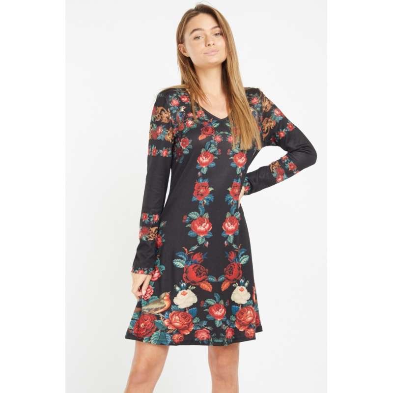 Tags: black, a line dress, floral printed, mini dresses, western style, women's wear, midi dress