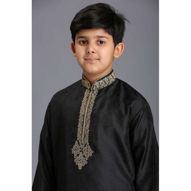 BLACK PAKISTANI DESIGNER BOYS KURTA SHALWAR