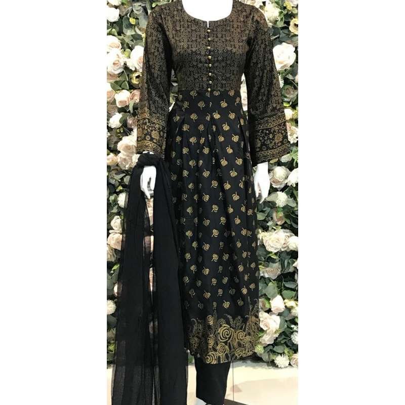 READYMADE PAKISTANI PRINTED FRONT & BACK LONG LENGTH LINEN FABRIC SUIT. iT HAS PLEATS FRONT & BACK, IT MAKES THE SUIT STYLISH AND ALSO HAS A SELF COLOUR PLAIN PIPING WITH BUTTONS ON NECKLINE TO ENHANCE THE LOOK..