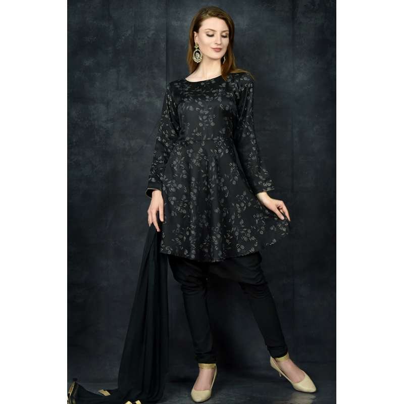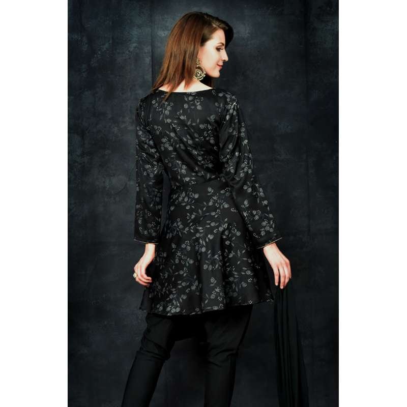 Black Peplum Style Printed Kurti Suit Set