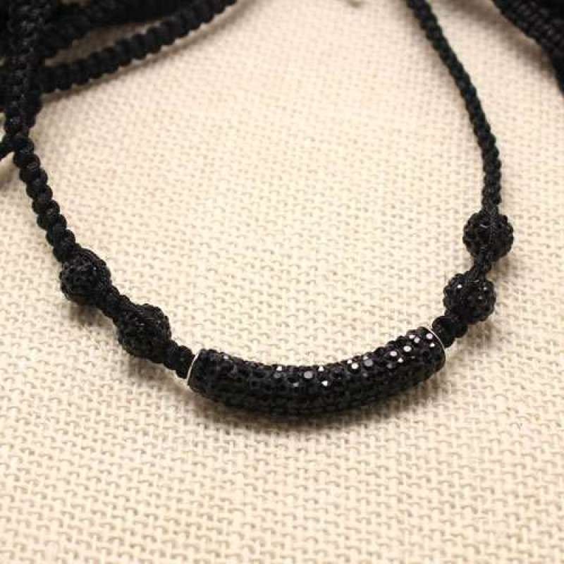 10mm 4 clay crystal balls(85 stones) With long Crystal tube in black threaded necklace with adjustable cord
