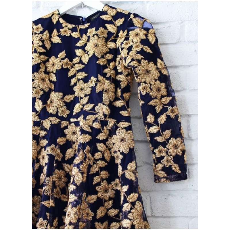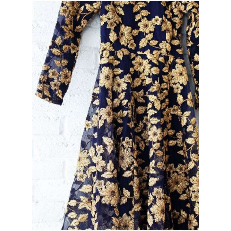 BLUE HEAVY EMBROIDERED FLOOR LENGTH READY MADE GOWN