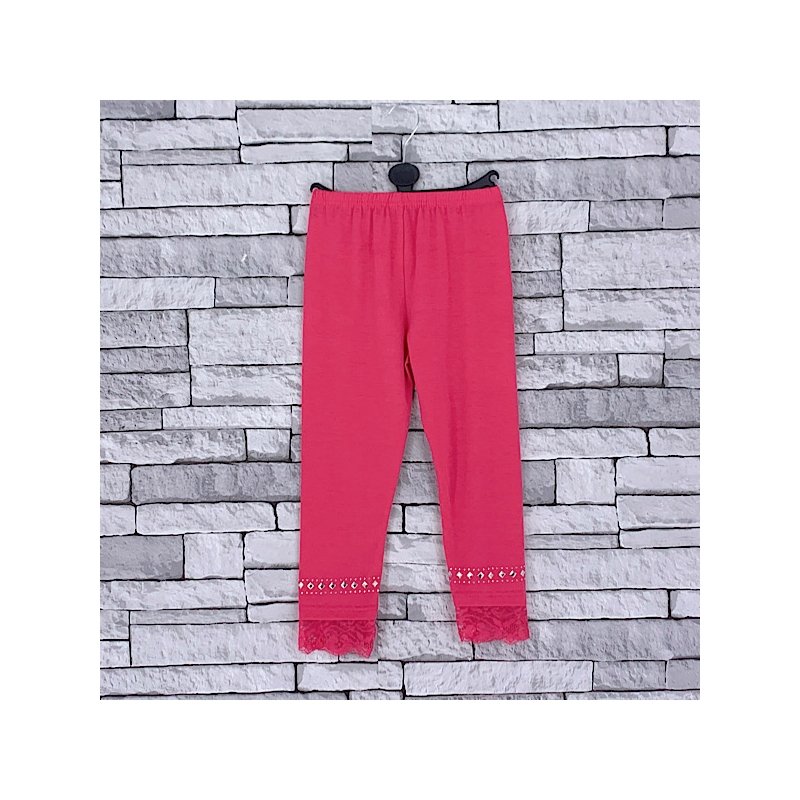 Girls hot pink leggings with diamante lace trim and elasticated waist.