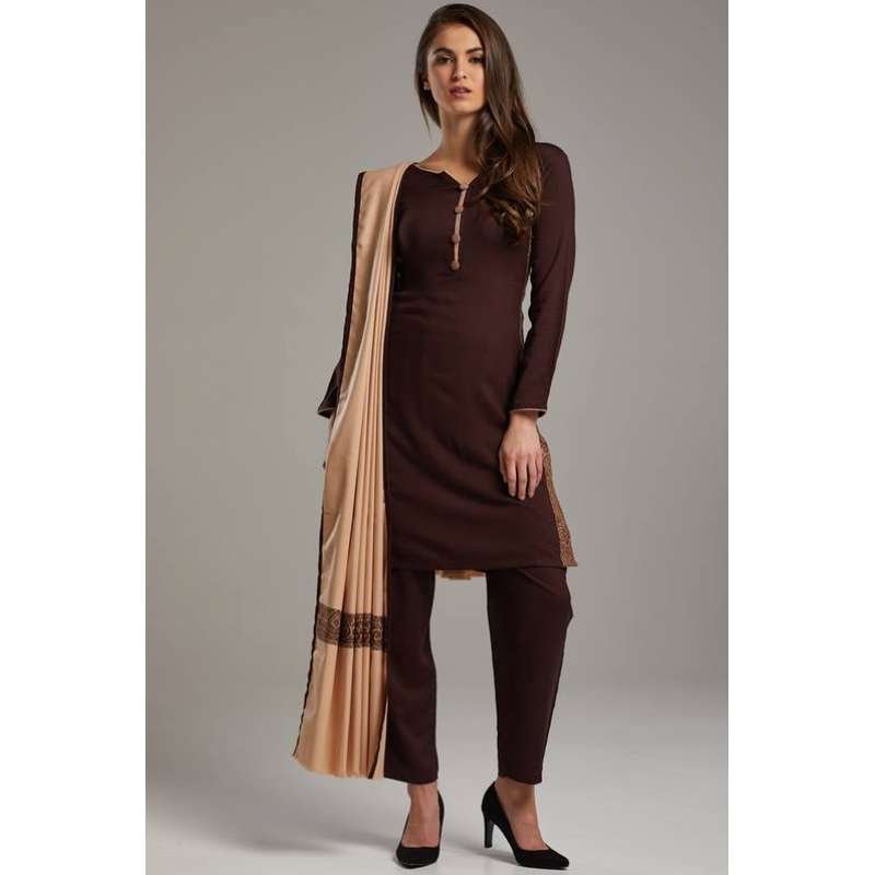 Masterpiece Choco Brown Winter Pakistani Style Salwar Suit Large Size