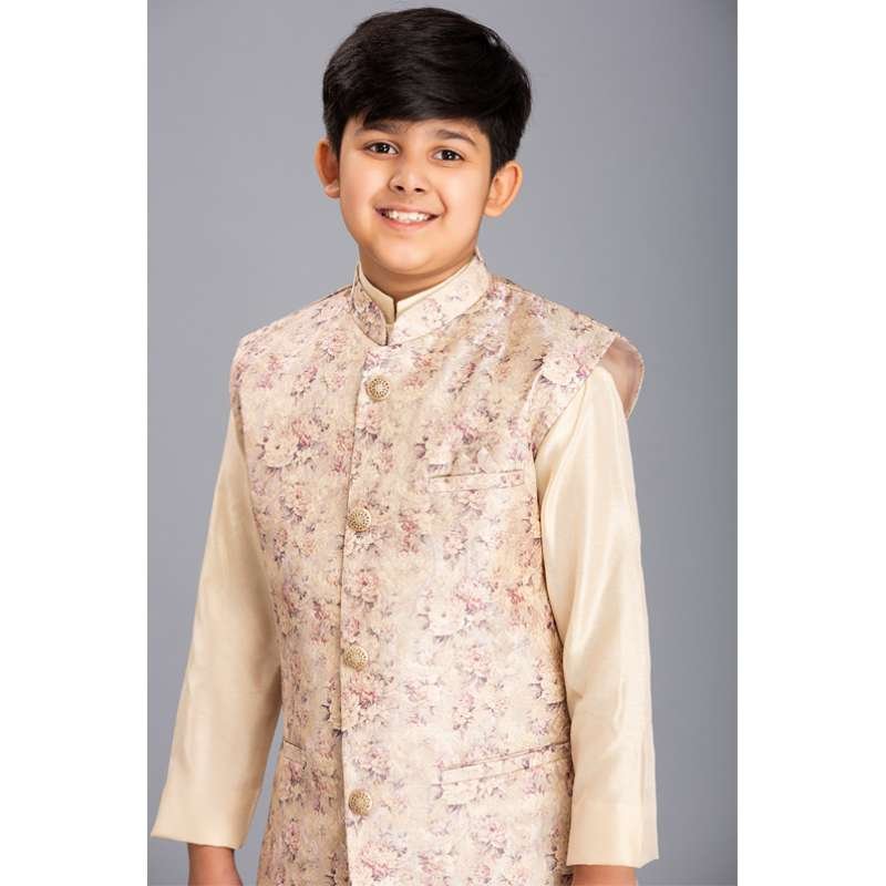 CREAM AND GOLD NEHRU JACKET, KURTA AND PAJAMA BOYS WEAR EID SUIT