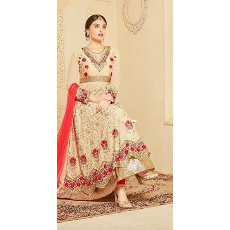 Indian Maxi Cream Party Evening Wedding Anarkali Suit (Ready Made XXL)