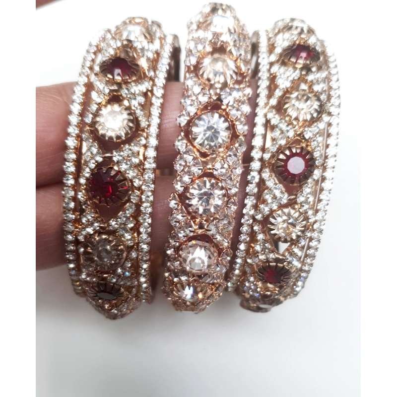 Red White Diamonds Heavy Gold Bangles For Wedding and Parties