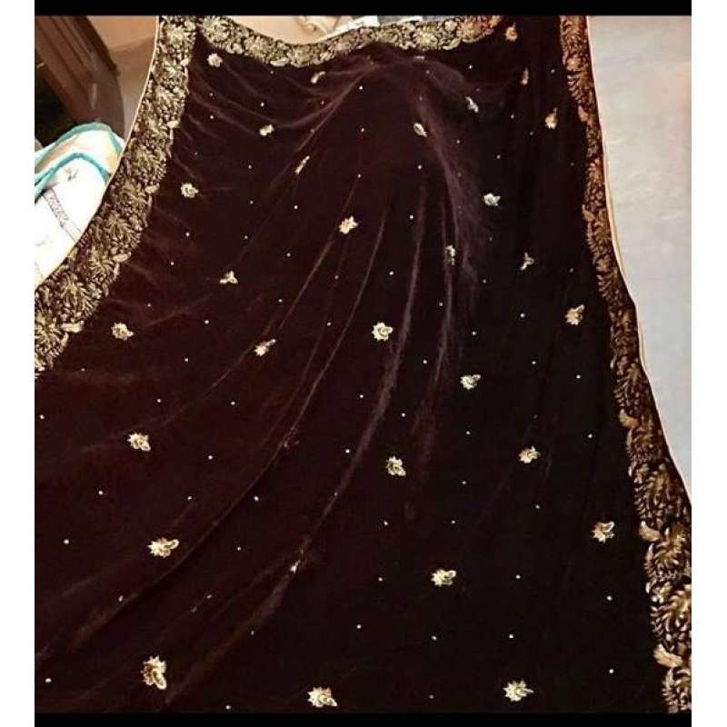 Long Brown Embroidered Velvet Shawl