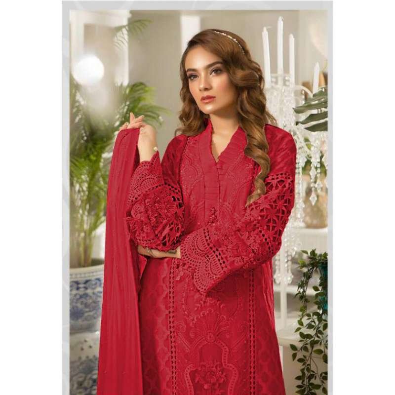 Samba Red Embroidered Organza Pakistani Style Suit