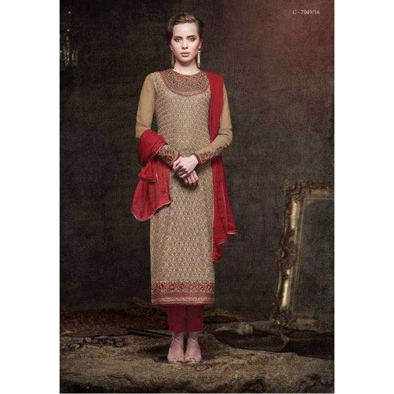 Fabulous Beige Colour Viscose Georgette Straight Cut Style Suit from Heroine