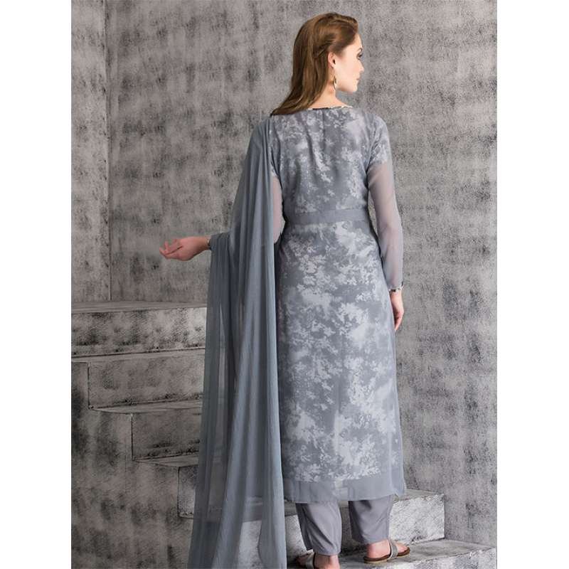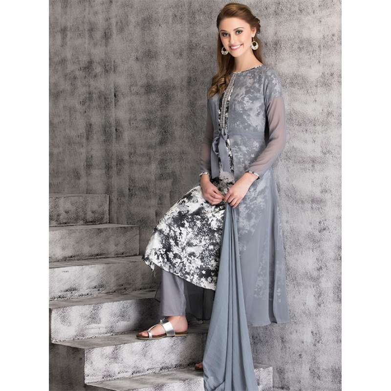 Grey Belted Jacket Dress Printed Readymade Indian Suit