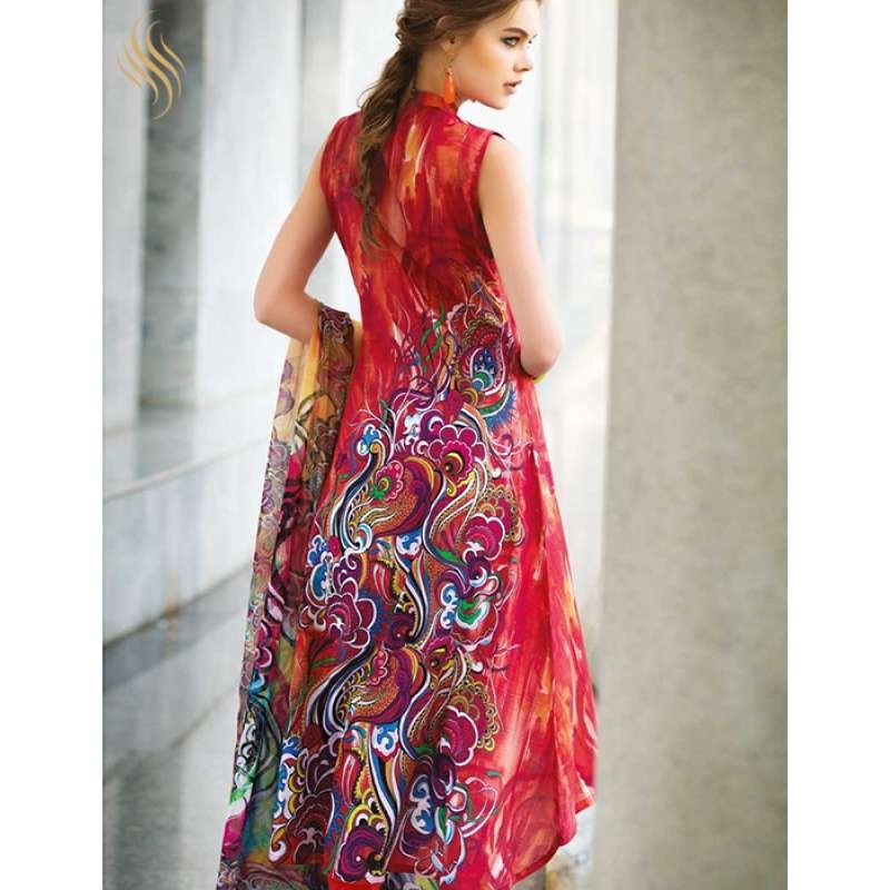 Be the cynosure of all eyes by wearing this Beautiful Red and Multi-colour French Crepe Print Suit.