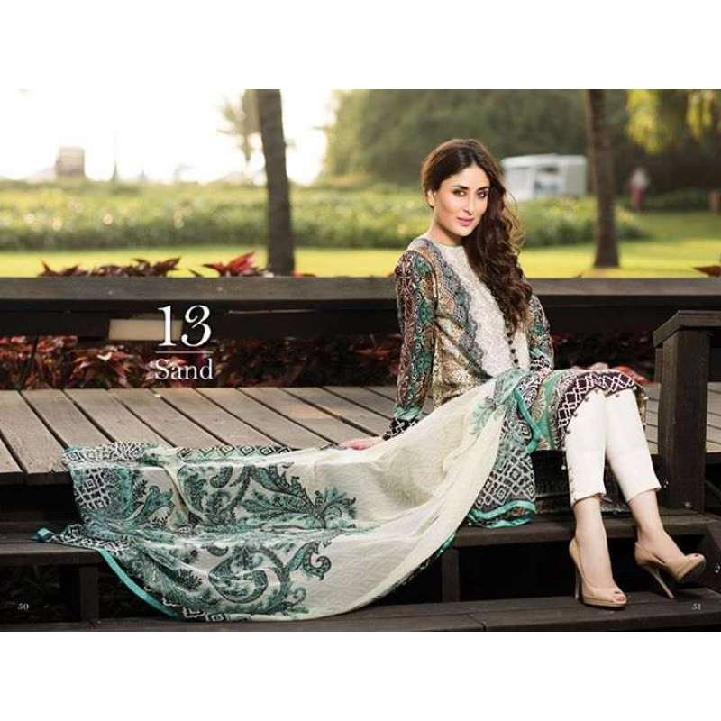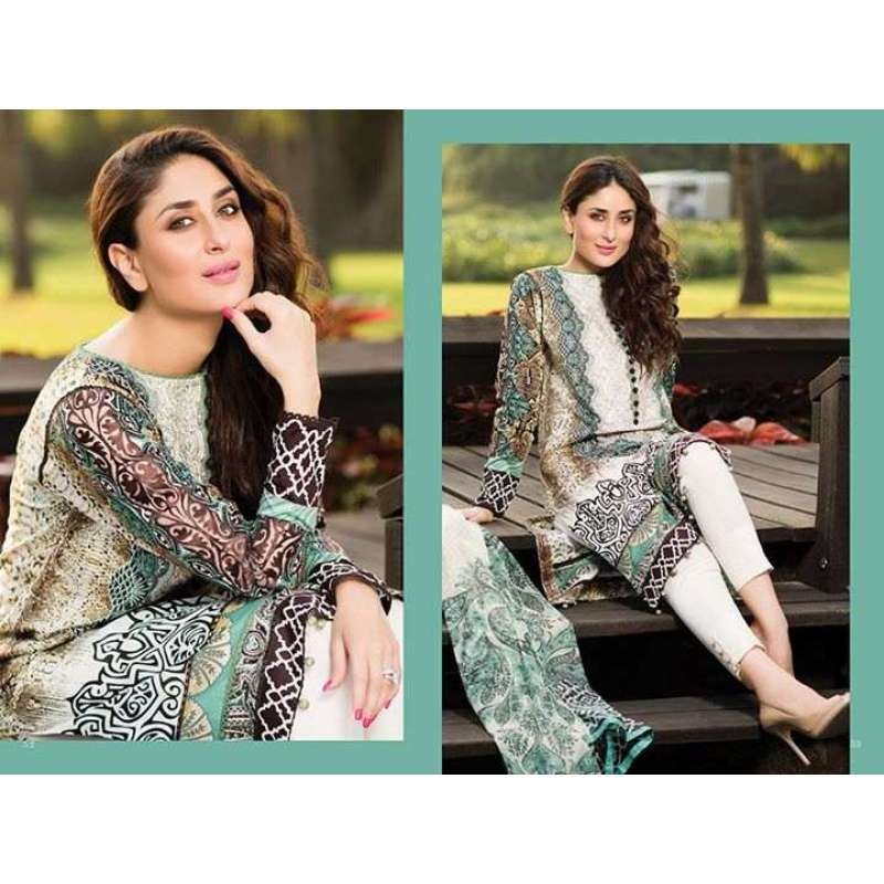 An appealing Stunning New Lawn Designer Salwar Kameez. Pure Chiffon Dupatta , Front Panel, Back Panel, Sleeve, Jacquard Trouser, EMB Border, Digital Border. . Give yourself stunning look with these new and unique designer dresses to fulfill your every desire and need.