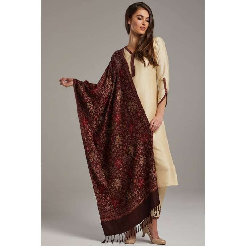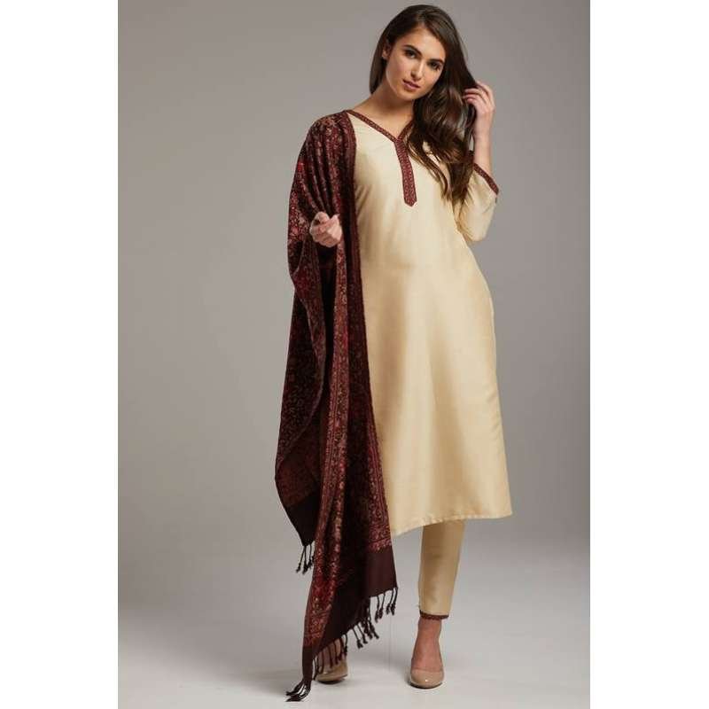 Fawn Punjabi Style Designer Woven Shawl Suit