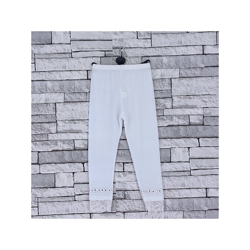 Girls ivory white leggings with diamante lace trim and elasticated waist.