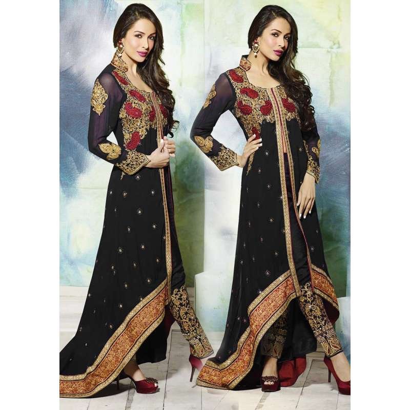 GL3801 Black GLOSSY MALAIKA ARORA ANARKALI DRESS