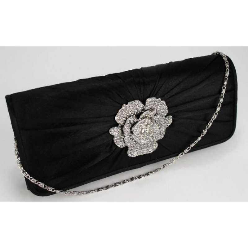 Gorgeous Black Crystal Flower Satin Clutch/Evening Bag