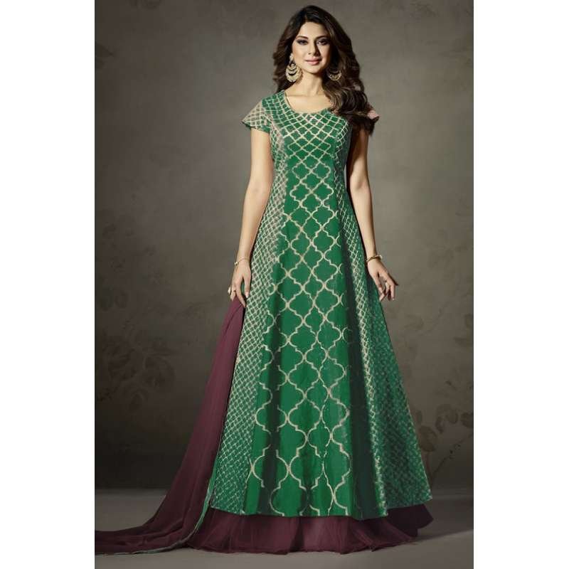 GREEN AND WINE INDIAN EMBELLISHED ANARKALI DRESS