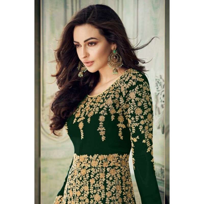 GREEN FRONT SLIT GEORGETTE INDIAN ANARKALI SUIT