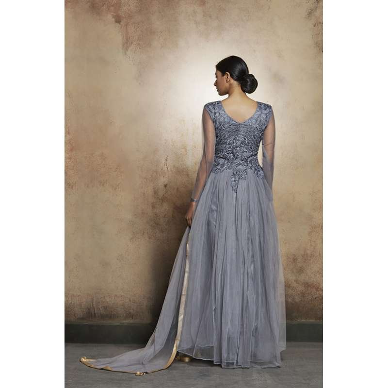 DAZZLING GREY LONG SHEER STYLE READY MADE INDIAN DRESS