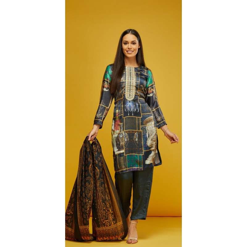 Readymade Pakistani designer printed silk salwar suit. it also comes with dupatta.