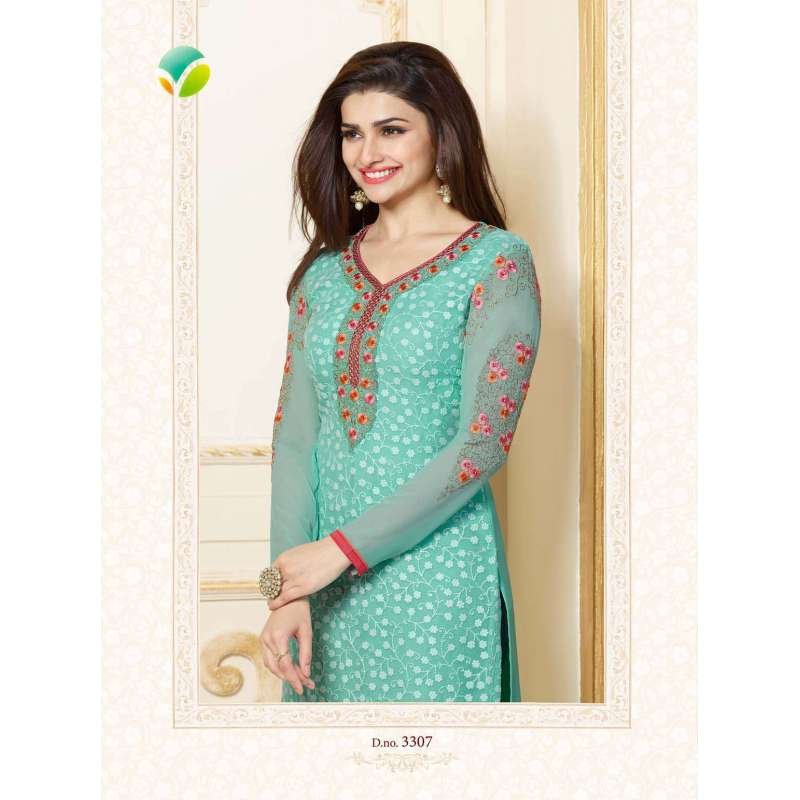 Beautiful stylish and stunning sophisticated kaseesh turquoise colour salwar kameez suit will bring out the pastoral beauty in you. Unstitch fabric in luxury georgette chiffon with with heavy thread work and embellishments, with chiffon dupatta.
