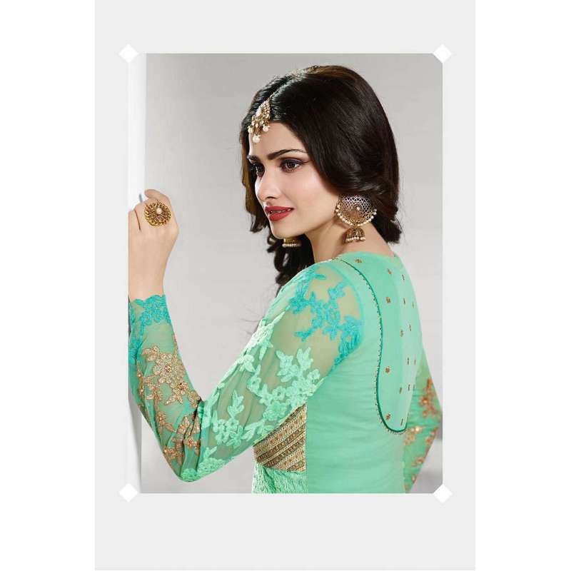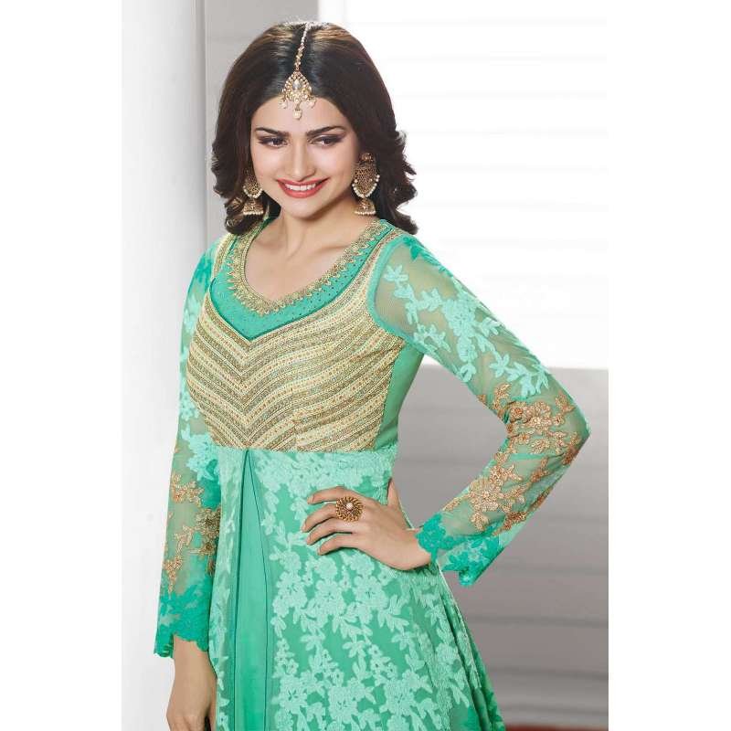 Asian Couture presents latest styles for Eid modeled by Prachi Desai. Georgette Anarkali suits modeled by Prachi Desai. Semistitched Anarkali designer suit is beautified with heavy embroidery.